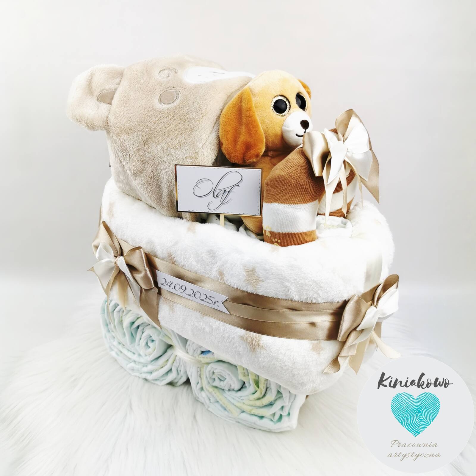 "Polecam, bardzo ładnie przygotowany pieluszkowy tort. Super prezent i bardzo dobrze zapakowany."