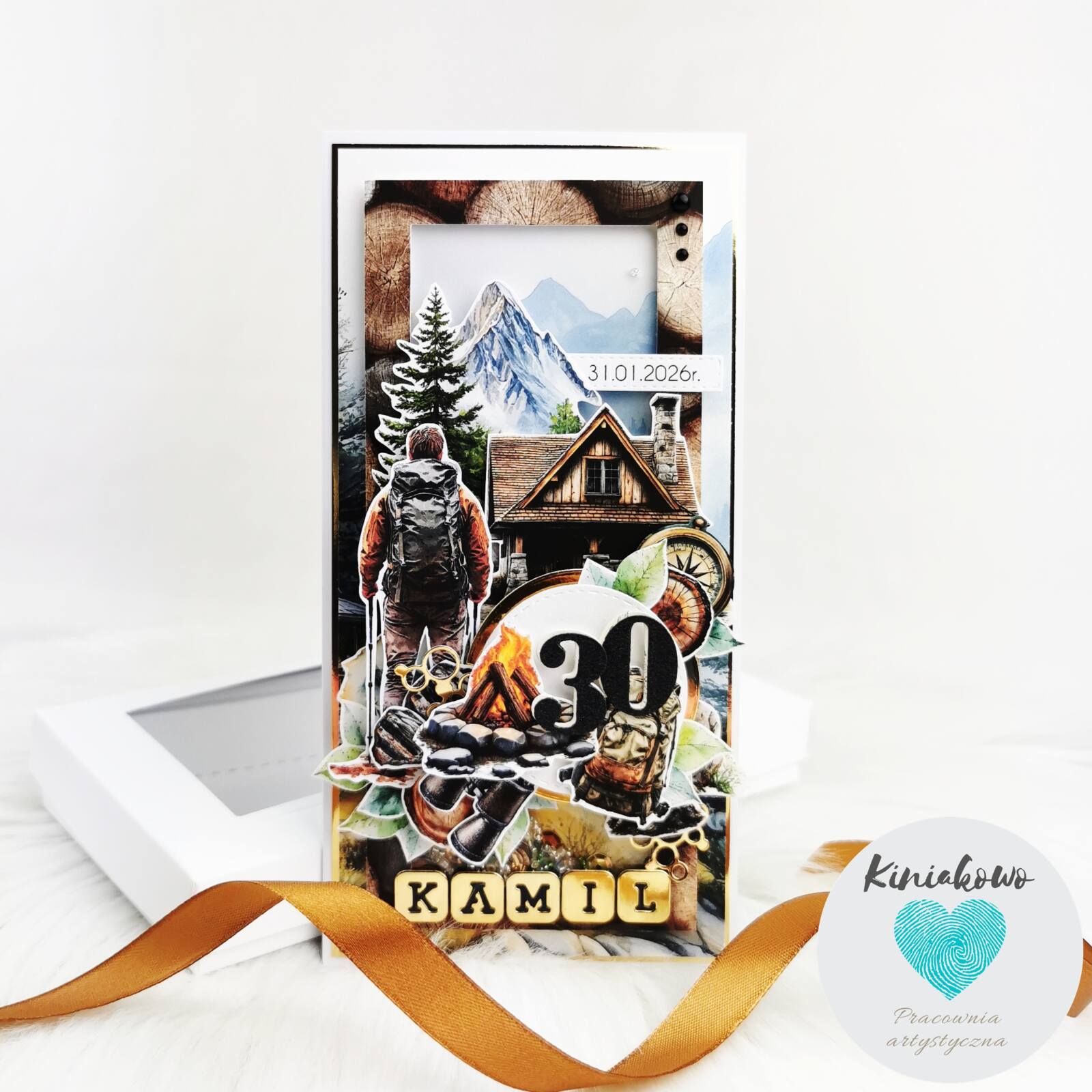 75,00 złKlimatyczna męska kartka w stylu retro z samochodem. Utrzymana w ciemnej kolorystyce granatu, czerni i brązu.