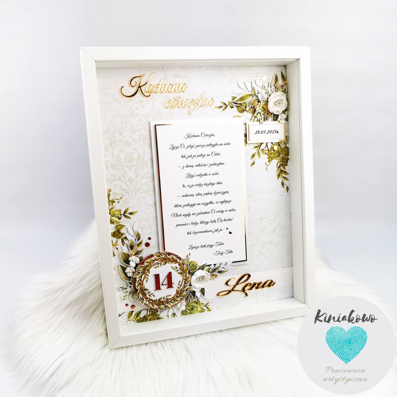 Kartkę z motywem piłkarskim można w dowolny sposób modyfikować, dodając imię, napis pasujący do okazji, z której zostanie wręczona np. „Kochanemu Dziadkowi”, „Sto lat”, „Dzień Ojca”, „Moc życzeń” itp. Zdjęcie główne kartki jest zdjęciem poglądowym, ręcznie tworzony produkt może różnić się od tego zaprezentowanego na zdjęciu głównym. Kartka dla miłośnika piłki nożnej jest produktem wykonywanym na indywidualne zamówienie Klienta.