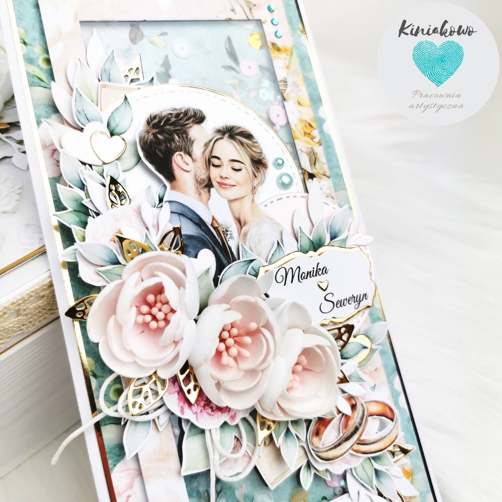 Kartka ślubna turkusowe uczucie zachwycająca swoją bogatą aranżacją kwiatową daje możliwość pełnej personalizacji. Na kartce można umieścić imiona młodej pary, datę ślubu, a w jej wnętrze może skrywać specjalne życzenia dedykowane młodym oraz praktyczną kieszonkę na pieniądze. Kartka ślubna turkusowe uczucie jest produktem tworzonym pod indywidualne zamówienie Klienta. Zdjęcie główne kartki to tylko zdjęcie poglądowe, ręcznie wykonywana kartka okolicznościowa z Parą Młodą i kwiatami może różnić się od tej przedstawionej na zdjęciu głównym.