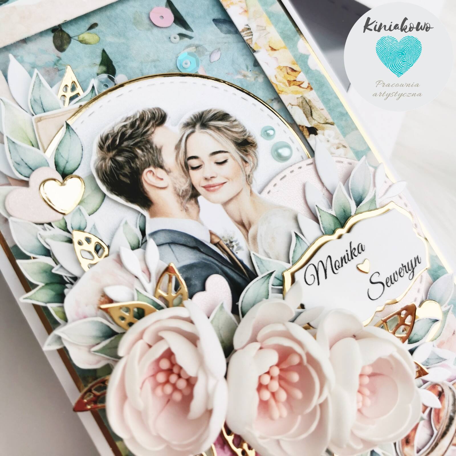 Każdy element został wykonany z dbałością o szczegóły – od precyzyjnie ułożonych płatków po starannie dobrane barwy i faktury. Kartka ślubna turkusowe uczucie idealnie sprawdzi się jako unikalny dodatek do prezentu ślubnego lub samodzielny gest pełen ciepłych życzeń.
