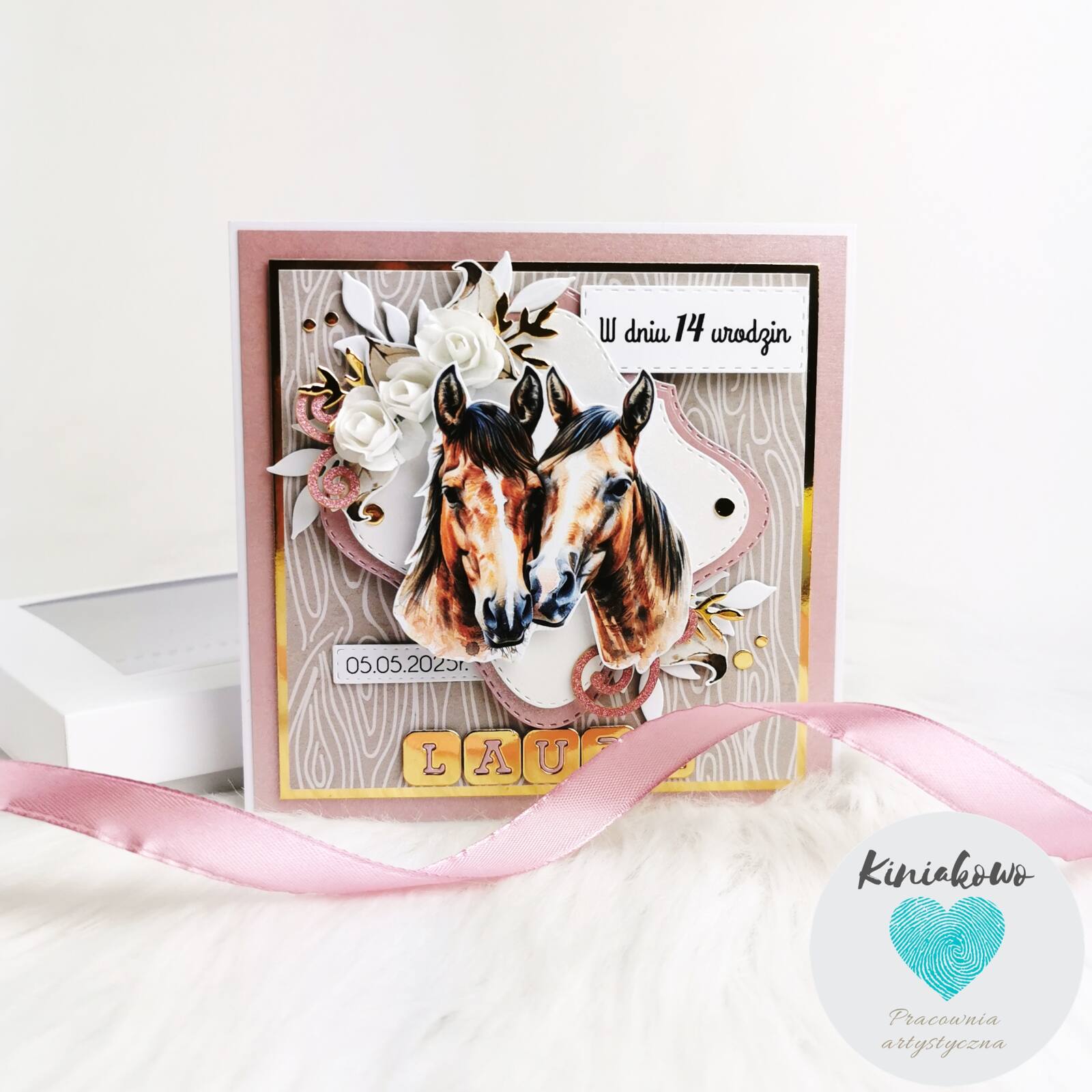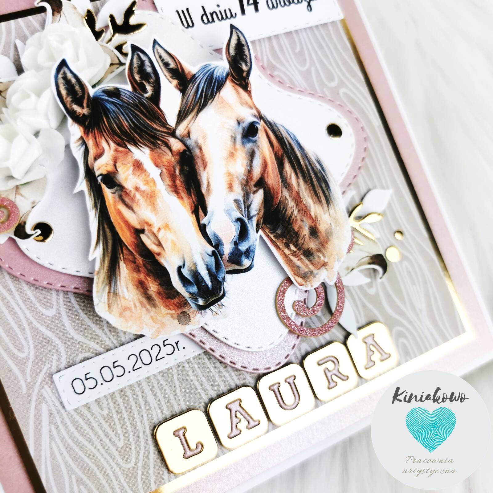 Kartka okolicznościowa ze koniem jest robiona z pasji do rękodzieła z niezwykłą precyzją i dbałością o najmniejszy szczegół. Kartka dla kobiety jest w 100% ręcznie tworzonym produktem w naszej pracowni artystycznej. Będzie wspaniałym upominkiem dla kobiety uwielbiającej konie. Kartka typu handmade jest cudowną pamiątką z wielu okazji, takich jak imieniny, urodziny, Dzień Babci, Dzień Matki, Dzień Kobiet i wiele więcej.