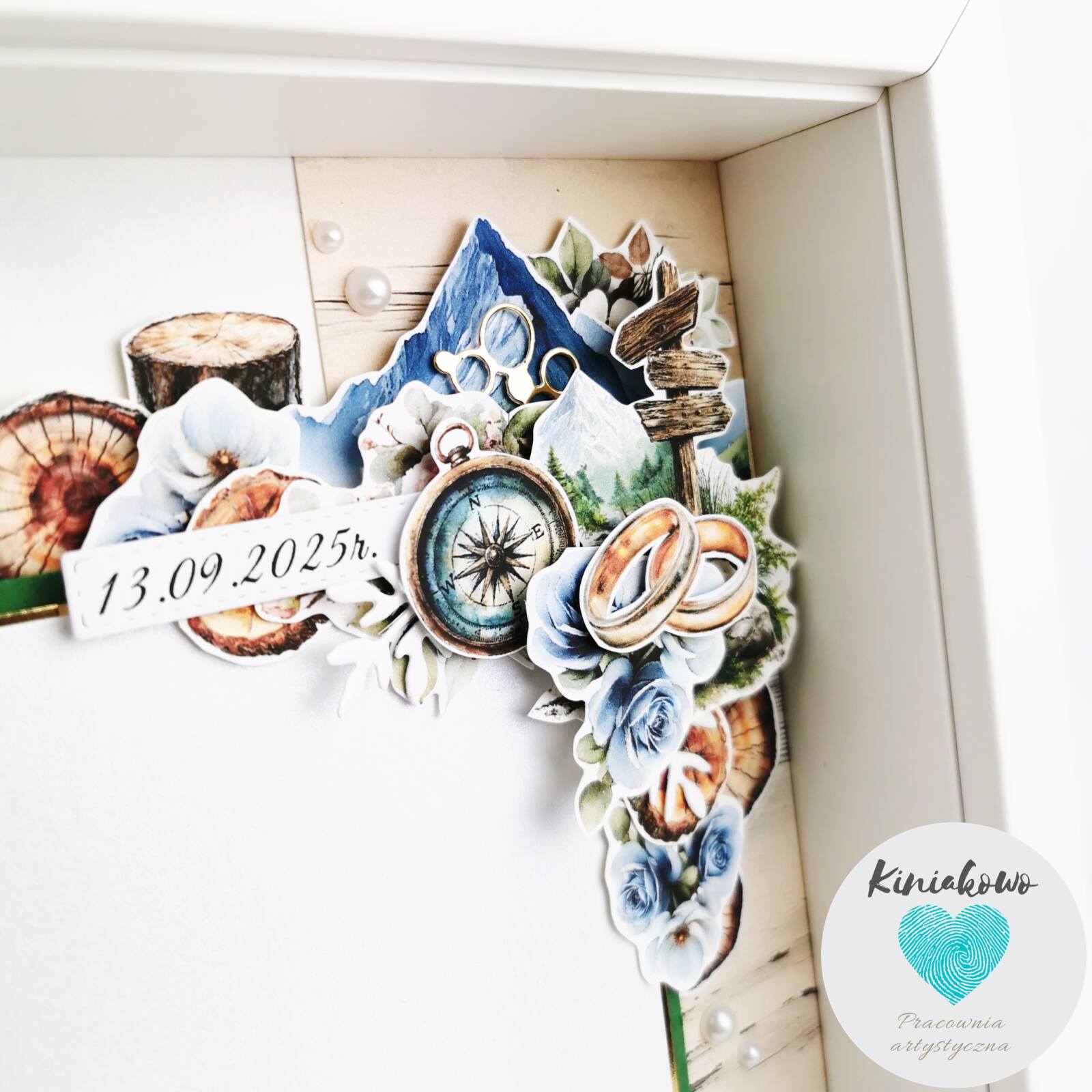 W ramce idealnej jako prezent ślubny znajduje się miejsce na zdjęcie Pary Młodej – aby uwiecznić najpiękniejszą chwilę, osobiste życzenia – od serca, w formie trwałej pamiątki oraz imiona Nowożeńców i data ich ślubu – dzięki czemu ramka staje się niepowtarzalna i w pełni spersonalizowana. Całość ozdobiona jest górskimi dodatkami i naturalnymi akcentami, które nadają projektowi wyjątkowego charakteru. Ręczne wykonanie sprawia, że każda ramka jest jedyna w swoim rodzaju – niepowtarzalna, tak jak historia każdej Pary Młodej.