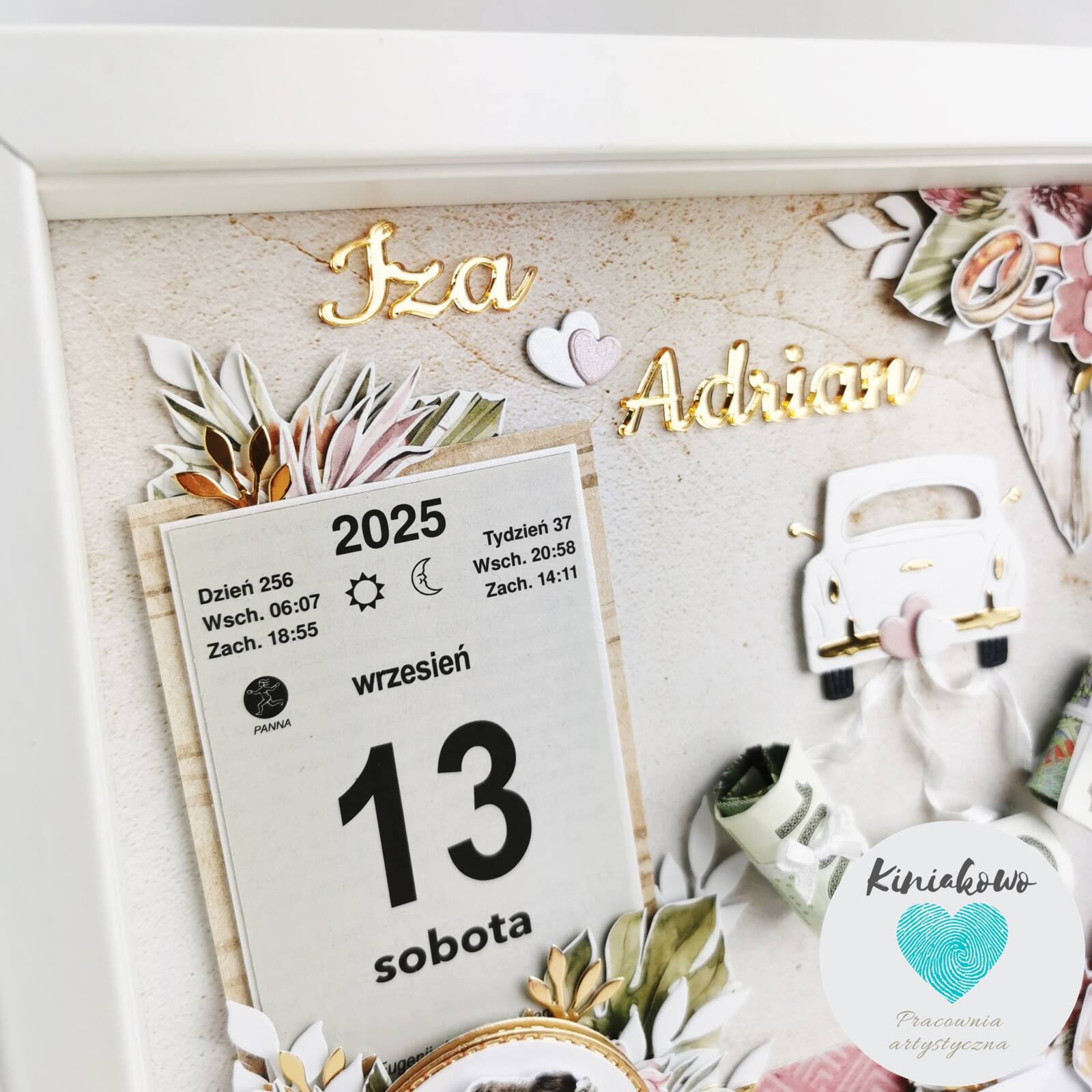 Ta personalizowana ramka ślubna to połączenie elegancji, symboliki i artystycznego rękodzieła. Będzie wyjątkową pamiątką dnia ślubu i piękną ozdobą wnętrza.