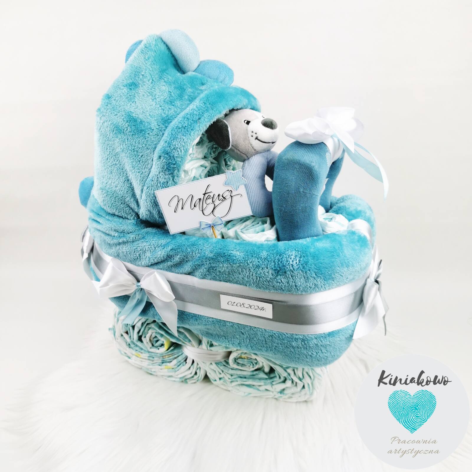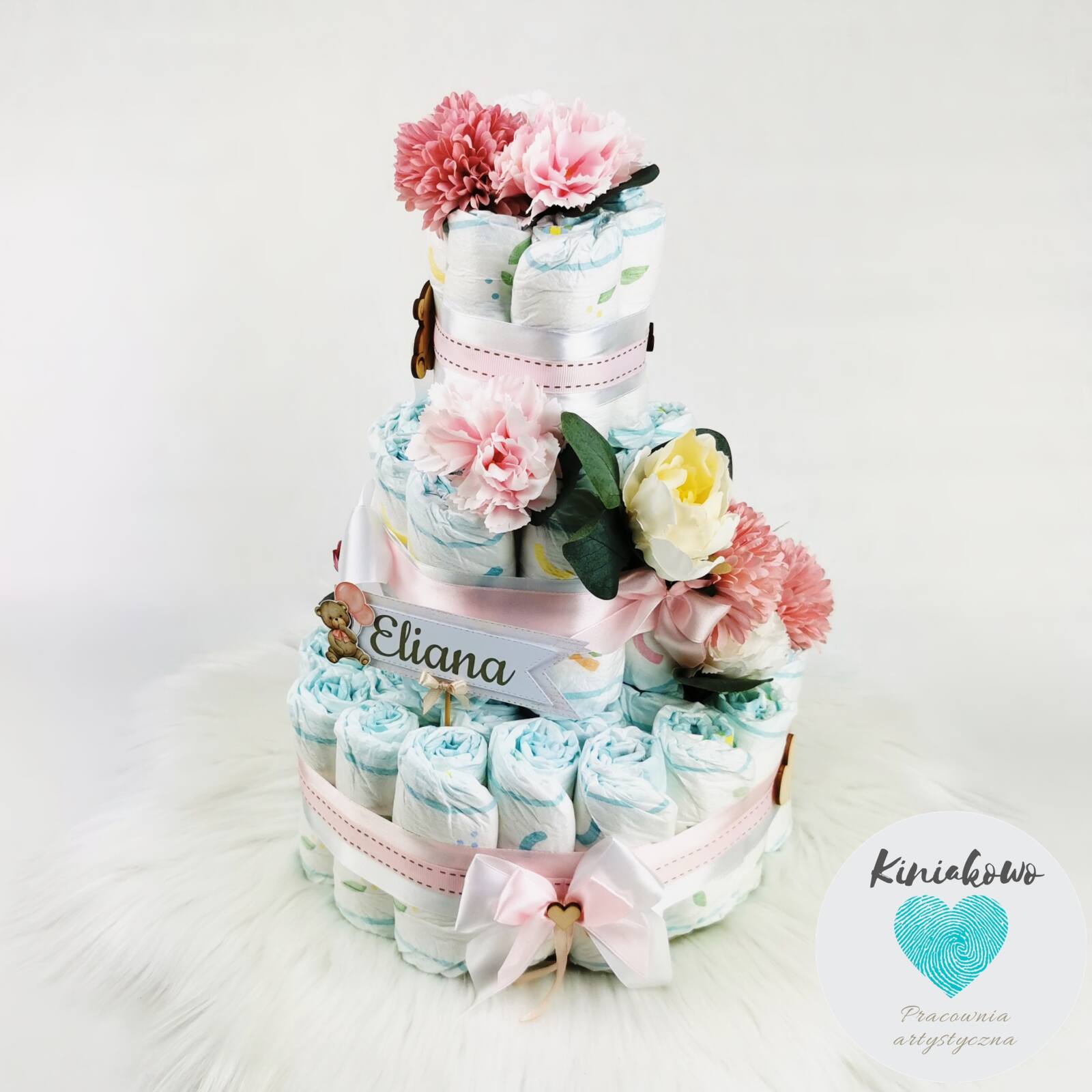 Ręcznie robiony trzypoziomowy tort z pampersów to nie tylko niezwykle praktyczny prezent, ale także cudowna oraz niepowtarzalna dekoracja pokoju dziecięcego. Dodatkowym atutem tortu lub wózeczka z pampersów jest możliwość jego personalizacji, dzięki czemu taki upominek zyskuje osobisty charakter.
