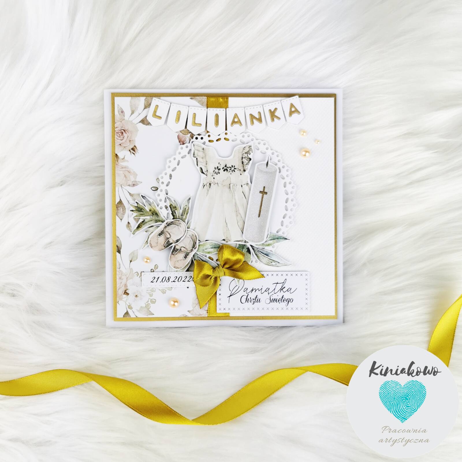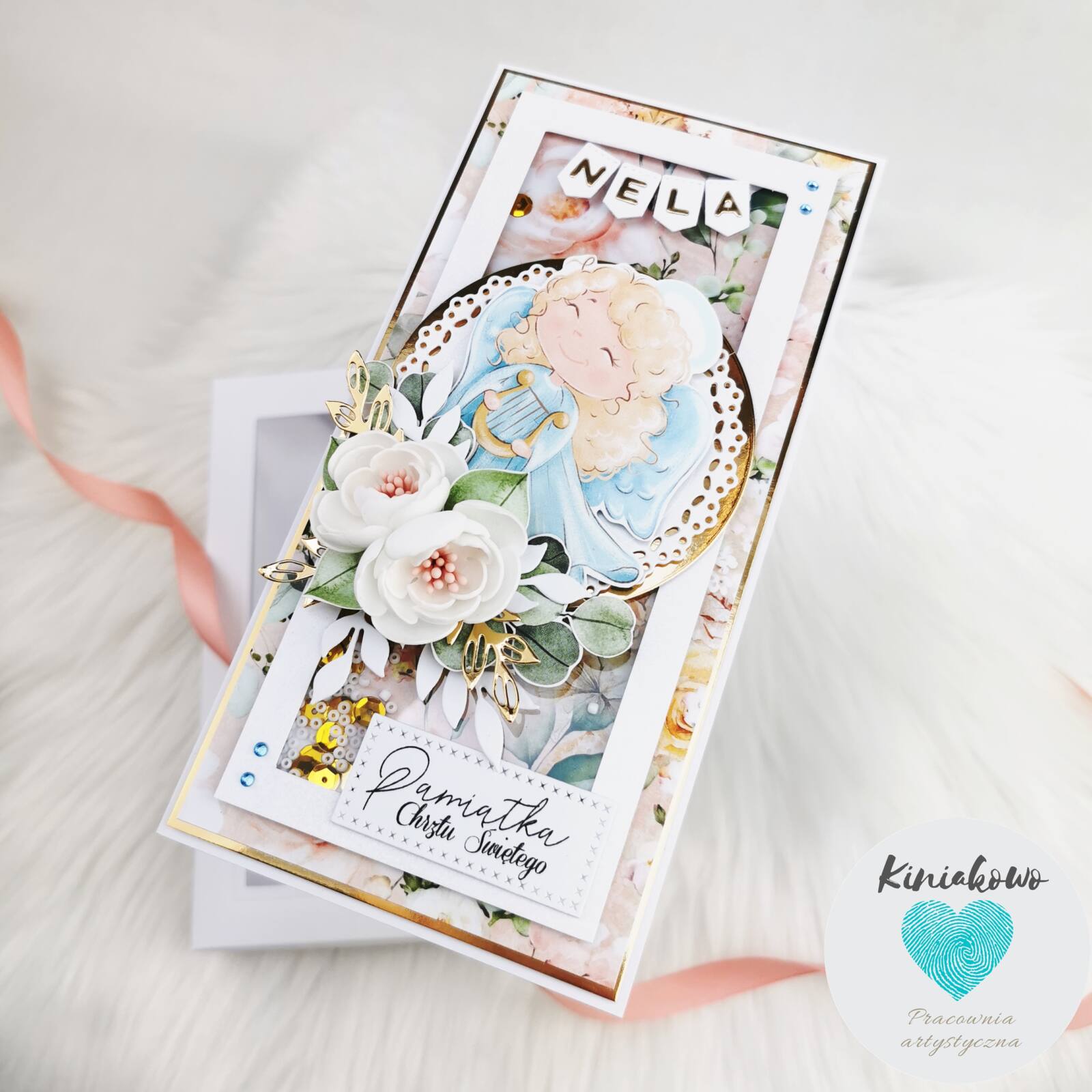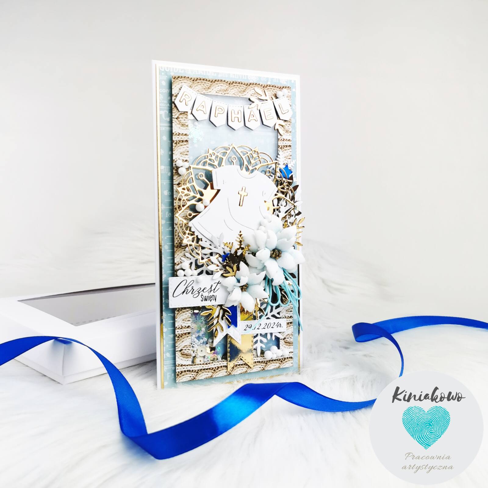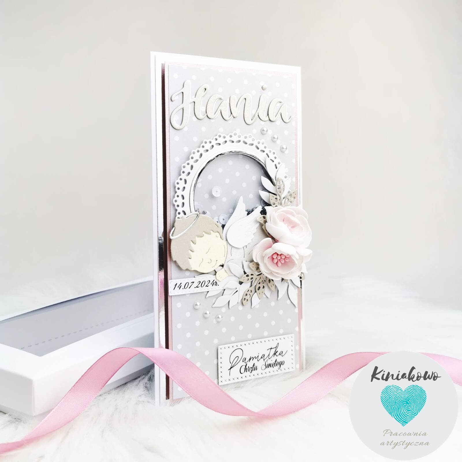 Najczęściej wybieranym upominkiem na Chrzest Święty dla dziecka są kartki okolicznościowe. W Kiniakowie znajdziecie niepowtarzalne kartki na chrzciny, które wręczone w eleganckim białym pudełku z okienkiem prezentują się szykownie. W ich wnętrzu poza pięknymi osobistymi życzeniami można umieścić praktyczną kieszonkę na pieniądze, dzięki czemu wręczane pieniądze zyskają niepowtarzalną oprawę, a sama ręcznie robiona kartka będzie wspaniałą pamiątką na wiele lat. Bogate zdobienia i ręcznie robione kwiaty dodają wyjątkowego uroku i stylu. Takich niebanalnych kartek na próżno szukać na sklepowych półkach, przepełnionych masowo produkowanymi kartkami.